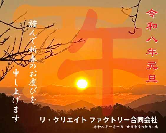 年始のご挨拶 2026-01-05 最終更新日時 : 2026-01-05 jun明けましておめでとうございます。皆様におかれましては輝かしい新年をお迎えのこととお喜び申し上げます。本年も、より一層のご支援、お引立てを賜りますようお願い申し上げます。皆様のご健康とご多幸をお祈りし、新年のご挨拶とさせていただきます。